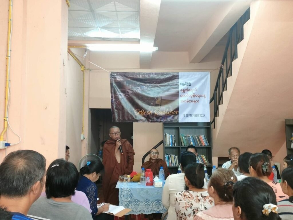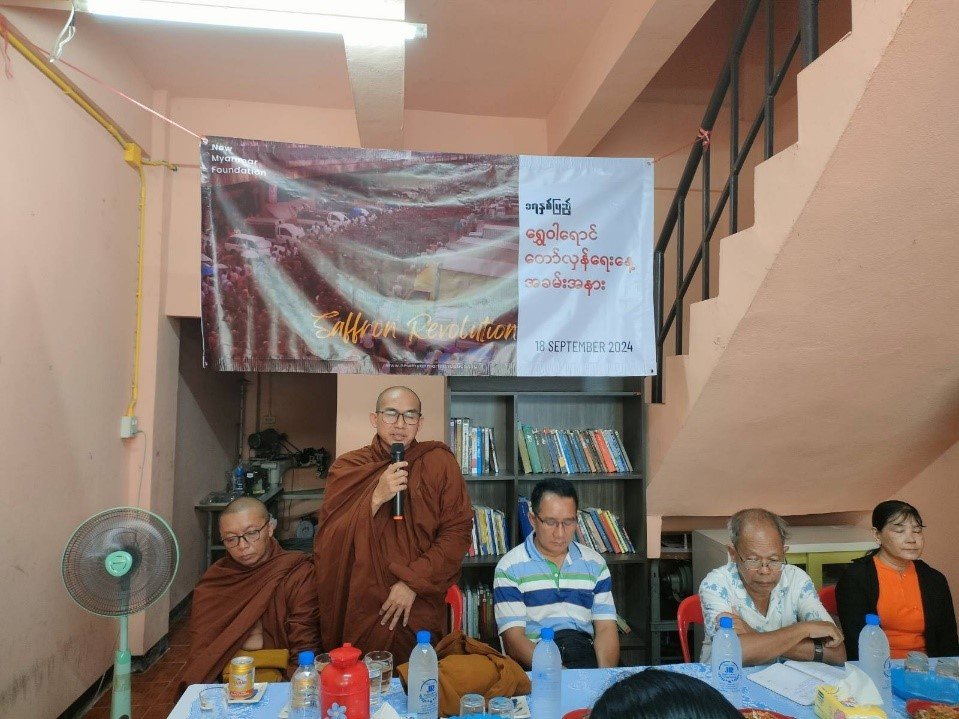 အခမ်းအနားတွင် ဦးစွာပထမ ကျဆုံးလေပြီးသော ဗိုလ်ချုပ်အောင်ဆန်း နှင့်တကွ အာဇာနည်ခေါင်းဆောင်ကြီး များအား အလေးပြုခြင်း၊ ဒီမိုကရေစီအရေး၊ တိုင်းရင်းသားများ၏ တန်းတူရေးနှင့် ကိုယ်ပိုင်ပြဌာန်းခွင့်အရေး အဆက်ဆက်တွင်အသက်ပေးလှူသွားရသော ရဟန်းရှင်လူ၊ ကျောင်းသား၊ပြည်သူများအတွက်ဝမ်းနည်းခြင်း အထိမ်းအမှတ်အဖြစ် “၈” စက္ကန့်ငြိမ်သက်ခြင်းတို့ပြုလုပ်ခဲ့ကြပါသည်။ ထို့နောက် New Myanmar Foundation ၏ Executive Director ဒေါက်တာစန်းအောင်မှ အဖွင့်အမှာစကား ပြောကြားခဲ့ပြီး အထူးဖိတ်ကြား ထားသော ဆရာတော်မင်းသုည (ဗုဒ္ဓတက္ကသိုလ်)၊ ဆရာတော် ဦိး‌ဃောသိတသာရ (မှော်ဘီ)၊ ကရင်အမျိုးသားအစည်းအရုံး KNUမှ ဖရိုစောအယ်ထူး နှင့် ဧရာဝတီတိုင်းဒေသကြီး အမျိုးသားဒီမိုကရေစီအဖွဲ့ချုပ် တိုင်းတွဲဖက် အတွင်းရေးမှူး ဒေါ်ခင်လှဌေးတို့မှ အသီးသီးအမှာစကားများပြောကြားခဲ့ကြပြီး ရွှေဝါရောင်တော်လှန်ရေးဖြစ်ပေါ်လာပုံ၊ ရဟန်းရှင်လူ ပြည်သူများ၏ ရွှေဝါရောင် တော်လှန်ရေးတွင် ပါဝင်ခဲ့ကြပုံများ၊ အရေးအခင်းအတွင်းကြုံတွေ့ခဲ့ရသော စစ်အာဏာရှင် များ၏ ရက်စက်ယုတ်မာမှုများ နှင့် လက်ရှိမြန်မာနိုင်ငံအတွင်း စစ်အာဏာရှင်များ၏ ရက်စက်ကြမ်းကြုတ်မှုများ၊ ပြည်သူများ၏ လူ့အခွင့်အရေး ဆုံးရှုံးနေရမှုများအား ပြောကြားခဲ့ကြပြီး အနာဂတ်တွင် တိုင်းရင်းသားတို့၏ တန်းတူရေးနှင့် ကိုယ်ပိုင်ပြဌာန်းခွင့်များရရှိပြီး အာဏာရှင်များအား အမြစ်ပြတ်ဖြုတ်ချကာ လွတ်လပ်၍တရားမျှတသော  ဒီမိုကရေစီ နိုင်ငံတော်သစ်ကြီး အမြန်ဆုံးရရှိရန် ဆက်လက်တိုက်ပွဲဝင်သွားကြရမည်ဖြစ်ပြီး၊ မိမိတို့တတ်စွမ်းသ၍ အမိမြန်မာနိုင်ငံ အတွက် ဝိုင်းဝန်းလုပ်ဆောင်ကြရန် နှိုးဆော်တိုက်တွန်းခဲ့ကြပါသည်။