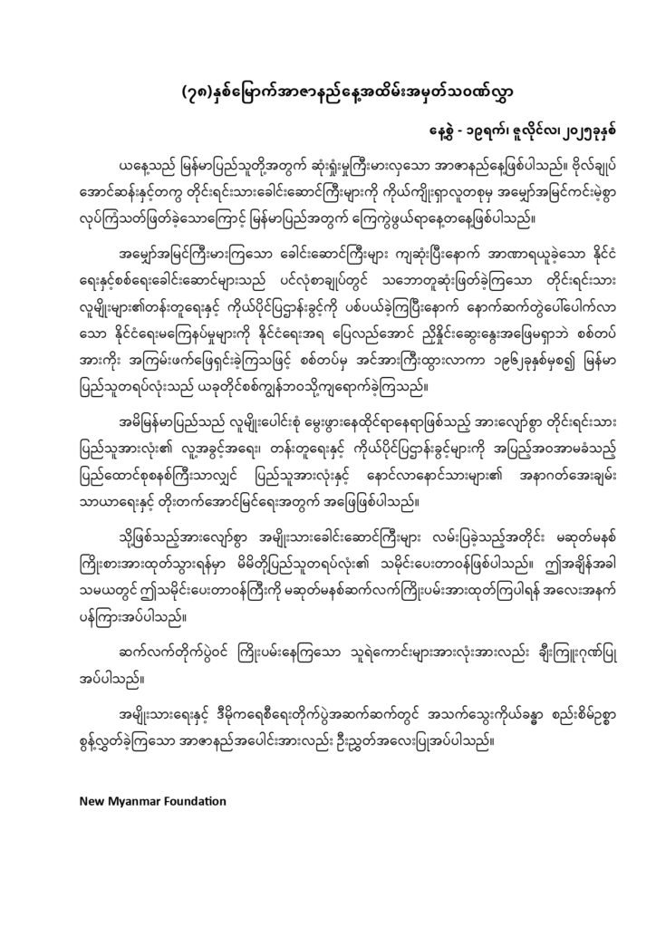 (၇၈) နှစ်မြောက် အာဇာနည်နေ့ အထိမ်းအမှတ် သဝဏ်လွှာ