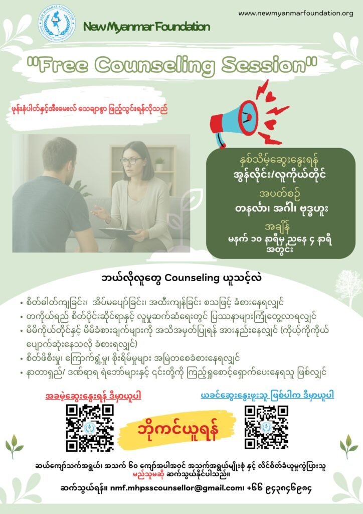 แ€กแ€ฑแ€ฌแ€€แ€บแ€•แ€ซ แ€…แ€ญแ€แ€บแ€•แ€ญแ€ฏแ€„แ€บแ€ธแ€†แ€ญแ€ฏแ€„แ€บแ€›แ€ฌแ€แ€ถแ€…แ€ฌแ€ธแ€แ€ปแ€€แ€บแ€™แ€ปแ€ฌแ€ธแ€”แ€พแ€„แ€ทแ€บแ€•แ€ผแ€ฟแ€”แ€ฌแ€™แ€ปแ€ฌแ€ธ แ€žแ€ญแ€ฏแ€ทแ€™แ€Ÿแ€ฏแ€แ€บ แ€กแ€แ€ผแ€ฌแ€ธแ€žแ€ฑแ€ฌ แ€…แ€ญแ€แ€บแ€•แ€ญแ€ฏแ€„แ€บแ€ธแ€†แ€ญแ€ฏแ€„แ€บแ€›แ€ฌแ€กแ€แ€ผแ€ฑแ€กแ€”แ€ฑแ€™แ€ปแ€ฌแ€ธ แ€แ€ถแ€…แ€ฌแ€ธแ€”แ€ฑแ€›แ€•แ€ซแ€€ แ€กแ€ฑแ€ฌแ€€แ€บแ€–แ€ฑแ€ฌแ€บแ€•แ€ผแ€•แ€ซ linkแ€™แ€พแ€แ€†แ€„แ€ทแ€บ ๐—ก๐—ฒ๐˜„ ๐— ๐˜†๐—ฎ๐—ป๐—บ๐—ฎ๐—ฟ ๐—™๐—ผ๐˜‚๐—ป๐—ฑ๐—ฎ๐˜๐—ถ๐—ผ๐—ป แ ๐—™๐—ฟ๐—ฒ๐—ฒ ๐—ฐ๐—ผ๐˜‚๐—ป๐˜€๐—ฒ๐—น๐—น๐—ถ๐—ป๐—ด ๐˜€๐—ฒ๐˜€๐˜€๐—ถ๐—ผ๐—ป (แ€กแ€แ€™แ€ฒแ€ทแ€”แ€พแ€…แ€บแ€žแ€ญแ€™แ€ทแ€บแ€†แ€ฝแ€ฑแ€ธแ€”แ€ฝแ€ฑแ€ธแ€แ€ผแ€„แ€บแ€ธแ€กแ€…แ€ฎแ€กแ€…แ€ฅแ€บ) แ€œแ€ฐแ€€แ€ญแ€ฏแ€šแ€บแ€แ€ญแ€ฏแ€„แ€บแ€–แ€ผแ€…แ€บแ€…แ€ฑแŠ ๐—ผ๐—ป๐—น๐—ถ๐—ป๐—ฒ แ€™แ€พแ€–แ€ผแ€…แ€บแ€…แ€ฑ แ€†แ€ฝแ€ฑแ€ธแ€”แ€ฝแ€ฑแ€ธแ€”แ€ญแ€ฏแ€„แ€บแ€•แ€ซแ€žแ€Šแ€บแ‹
