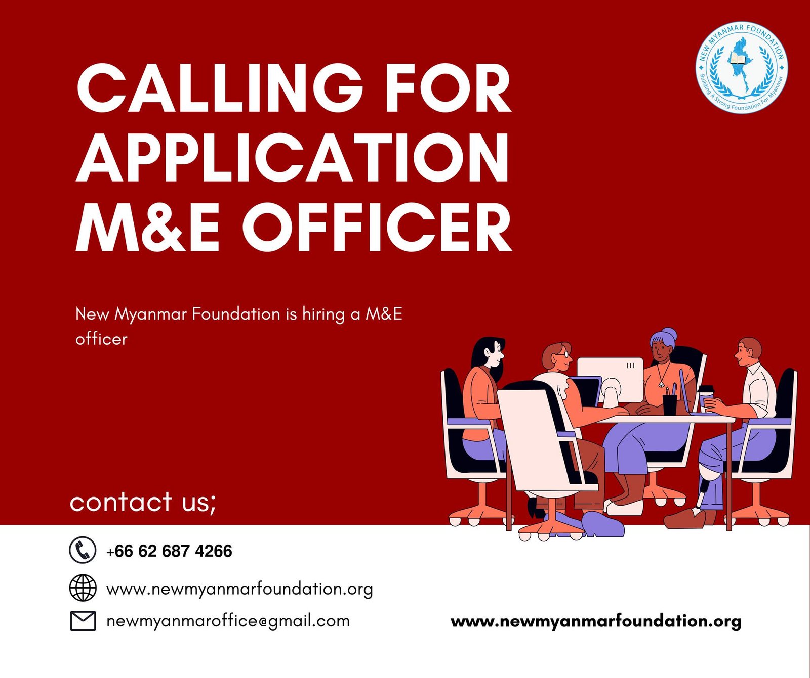 𝐍𝐄𝐖 𝐌𝐘𝐀𝐍𝐌𝐀𝐑 𝐅𝐎𝐔𝐍𝐃𝐀𝐓𝐈𝐎𝐍 မှ 𝐌𝐨𝐧𝐢𝐭𝐨𝐫𝐢𝐧𝐠 & 𝐄𝐯𝐚𝐥𝐮𝐚𝐭𝐢𝐨𝐧 𝐎𝐟𝐟𝐢𝐜𝐞𝐫 ရာထူးအတွက် လျှောက်လွှာများ ခေါ်ယူနေပါသည်။