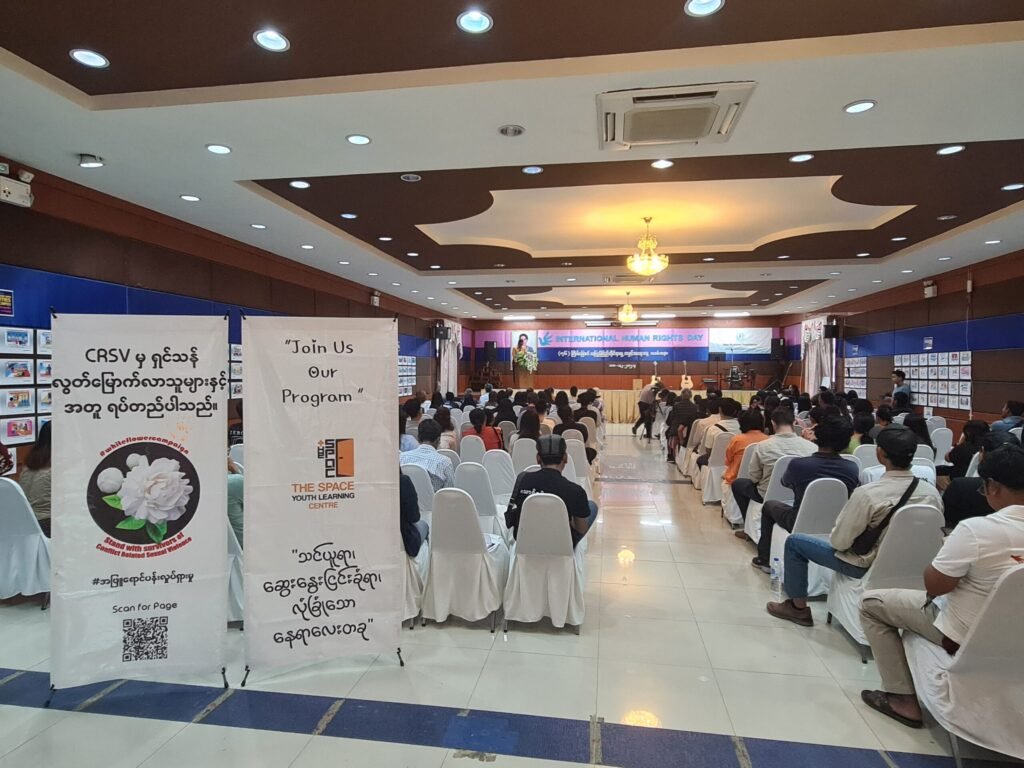 Following the speeches, various organizations involved in human rights work shared their efforts and initiatives, while tribute messages were delivered to honor those fighting for human rights. Furthermore, individuals who had personally experienced human rights violations shared their stories, and a documentary film titled “War Crime” was shown, focusing on the brutal killings in Naungpinthar Village by the military junta.