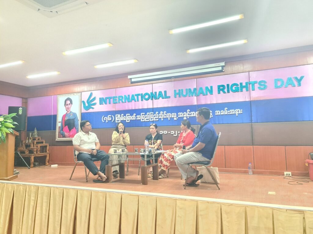 The New Myanmar Foundation also hosted a panel discussion on human rights during the event, with participation from U Aung Myo Kyaw of AAPP, Ma Zuu Zuu May, Daw Thinzar Mya, Naw Htoo Htoo, and Ko Zwe, who led the conversation.