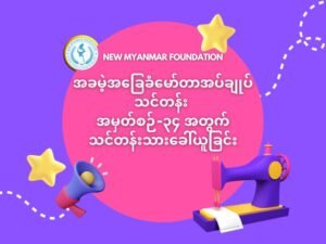 New Myanmar Foundation မှ စီစဉ်သည့် အခမဲ့ အခြေခံမော်တာစက်နင်းသင်တန်း တက်ရောက်နိုင်ရန် သင်တန်းသား၊သင်တန်းသူခေါ်ယူခြင်း October 19, 2023 Read More »