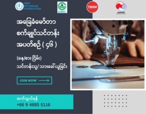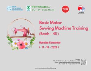 New Myanmar Foundation မှ စီစဉ်သည့် အခမဲ့အခြေခံမော်တာ စက်ချုပ်သင်တန်း (နေ/စား ငြိမ်း) October 17, 2024 Read More »