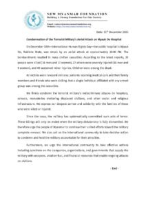 Condemnation of the Terrorist Military’s Aerial Attack on Myauk Oo Hospital December 11, 2025 Read More »