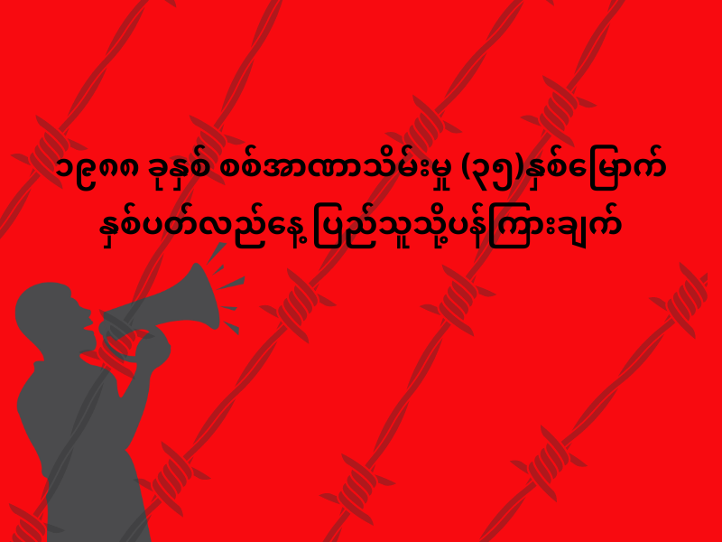 ပြည်သူတရပ်လုံးအနေဖြင့် စစ်အာဏာရှင်စနစ်ကို အပြီးတိုင်ချေမှုန်းတိုက်ဖျက်သွားကြပါရန်လည်း လေးစားစွာပန်ကြား အပ်ပါသည်။