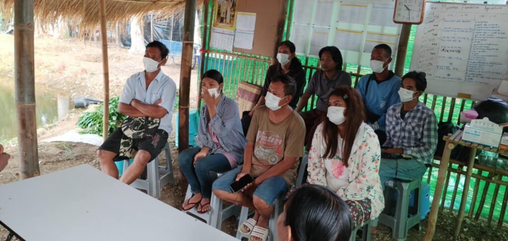 သင်တန်းတာဝန်ခံ ဒေါ်ခင်လှဌေးမှ စိုက်ပျိုးရေးသင်တန်းသည် အပတ်စဉ် (၅) ဖြစ်ပြီး သင်တန်းဖွင့်လှစ်ရခြင်း၏ အဓိက ရည်ရွယ်ချက်မှာ အခက်ခဲရှိပြီး ရပ်တည်ရေးအတွက်ခက်ခဲနေသည့် မြန်မာပြည်သူများ မိမိကိုယ်ကိုရပ်တည်နိုင်ရန် ရည်ရွယ်ဖွင့်လှစ်ခြင်းဖြစ်ကြောင်း၊ သင်တန်းကာလ (၃၀) ရက်အတွင်း စည်းကမ်းများကို လေးစားလိုက်နာရန်၊ သင်တန်းကာလအတွင်း မိသားစုဝင်များကဲ့သို့ ပေါင်းသင်းဆက်ဆံကြရန်နှင့် အမျိုးသားမှာအမျိုးသမီးများအားကာကွယ်စောင့်ရှောက်ရန်၊ ဘေးပါတ်၀န်းကျင်ကို အနှောက်အယှက်မပေးရန်၊ထိုင်းနိုင်ငံမှ နှင့် ထိုင်းဥပဒေကိုလေ့လာခြင်းဖြင့် မိမိကိုယ်ကို ကြိုတင်ကာကွယ်ရန်၊ မိမိတို့အစွမ်းအစဖြင့် ရပ်တည်နိင်ပြီး တခြားခက်ခဲနေသူများကိုလည်း ပြန်လည်ကူညီပေးရန်တို့အား ပြောကြားခဲ့ပါသည်။ ထို့အပြင် လက်တွေ့လုပ်ဆောင်ရာများနှင့် အခက်အခဲများကို သင်တန်းဆရာနဲ့ မိမိကို အချိန်မရွှေးဆက်သွယ်နိုင်ပါကြောင်း၊ သင်တန်းမှချမှတ်ထားသော စည်းကမ်းများအား လေးစားလိုက်လိုက်နာရန်နှင့် ထပ်မံ ဖြည့်စွက်အနေဖြင့် ခွင့်မဲ့ပျက်ကွက် ခြင်းနှင့်ပါတ်သက်သည့် စည်းကမ်းချက် များအကြောင်း၊ သင်တန်းသားတစ်ဦး စီတိုင်းက သင်တန်းအောင်မြင်စွာ ပြီးဆုံးရေးအတွက် တာ၀န်ကိုယ်စီရှိကြောင်း ပြောကြားခဲ့ပြီး ဆက်လက်၍ သင်တန်းဆရာ မှ စိုက်ပျိုးရေးသင်တန်းသို့ ရောက်ရှိ လာကြသော သင်တန်းသူ / သား များအား ဝမ်းသာ ကြိုဆိုကြောင်း ၊ တပိုင်တနိုင်စိုက်ပျိုးနည်းဖြစ်ပြီး မိမိကိုယ်ကို ရပ်တည်နိုင်မည့် လုပ်ငန်း ဖြစ်ကြောင်း၊ထောက်ပံငွေကြောင့် မဟုတ်ဘဲ ပညာကိုအဓိကထားသင်ယူရန်နှင့် ယခု သင်တန်းသားများ ၏အောင်မြင်မှုသည် နောက်လူများအတွက် အခွင့်အရေး ဖြစ်ကြောင်း အမှာစကား ပြောဆိုခဲ့သည်။ ထို့နောက် သင်တန်းသားများမှ တစ်ဦးချင်းမိတ်ဆက်စကားများ ပြောကြား၍ အခမ်းအနားအစီအစဉ်အား အောင်မြင်စွာ ပိတ်သိမ်းခဲ့ပါသည်။