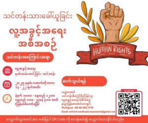 လူ့အခွင့်အရေး ချိုးဖောက်မှုများ မှတ်တမ်းတင်ခြင်း အွန်လိုင်းသင်တန်း အပတ်စဉ် (၅) အတွက် သင်တန်းသားများခေါ်ယူခြင်း September 26, 2025 Read More »