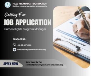 လူ့အခွင့်အရေးအစီအစဥ် – စီမံကိန်းတာဝန်ခံ (𝗣𝗿𝗼𝗴𝗿𝗮𝗺 𝗠𝗮𝗻𝗮𝗴𝗲𝗿) ရာထူးအတွက် လျှောက်လွှာ ခေါ်ယူခြင်း August 5, 2025 Read More »