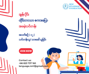 𝐍𝐞𝐰 𝐌𝐲𝐚𝐧𝐦𝐚𝐫 𝐅𝐨𝐮𝐧𝐝𝐚𝐭𝐢𝐨𝐧 ၏ အွန်လိုင်းထိုင်းစကားပြောသင်တန်းများတွင် သင်ကြားပေးနိုင်မည့် ဆရာ/ဆရာမများအတွက် လျှောက်လွှာခေါ်ယူခြင်း May 26, 2025 Read More »