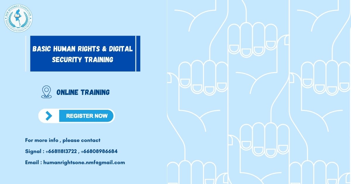 နယူးမြန်မာဖောင်ဒေးရှင်းမှ ၂၀၂၄ ခုနှစ် စက်တင်ဘာလ မှ နို၀င်ဘာလအတွင်း ဖွင့်လှစ်ပို့ချပေးမည့် လူ့အခွင့်အရေးအခြေခံနှင့် ဒီဂျစ်တယ် ဘေးကင်းလုံခြုံရေးသင်တန်းသို့ တက်ရောက်လိုသူများအနေနဲ့ အောက်ပါ Google Form တွင် Register လုပ်နိုင်ပါသည်။ ၂၀၂၄ စက်တင်ဘာလ မှ နို၀င်ဘာလအထိ ဖွင့်လှစ်မည့်သင်တန်းများအတွက် ယခုလျှောက်လွှာခေါ်ယူခြင်းမှ သတ်မှတ်ချက်ကိုက်ညီသူများကို ကြိုတင်ရွေးချယ်ထားမည်ဖြစ်ပြီး၊ အလှည့်ကျ သင်တန်းအလိုက် ဆက်သွယ်တက်ရောက်စေမည်ဖြစ်ပါသည်။