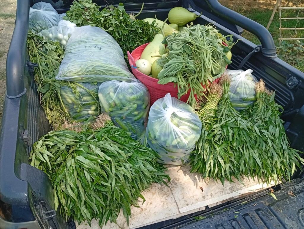 20 . 2 . 2025 ရက်နေ့တွင် စိုက်ပျိုးရေးခြံမှ ထွက်ရှိသော ချဉ်ပေါင်ရွက် – 31 kg , ကန်စွန်းရွက် – 22 kg , ကြက်ဟင်းခါးသီး – 20 kg , သခွါးသီး – 103 kg , ပဲတောင့်ရှည် – 9 kg , ဘူးသီး – 91 kg နှင့် ရုံးပတီးသီး – 2 kg ( စုစုပေါင်း – 278 kg ) တို့အား ( Love and Care ကျောင်း )အား လူဦးရေ – 1112 ဦးအတွက် သွားရောက်လှူဒါန်းပေးခဲ့ပါသည်။
