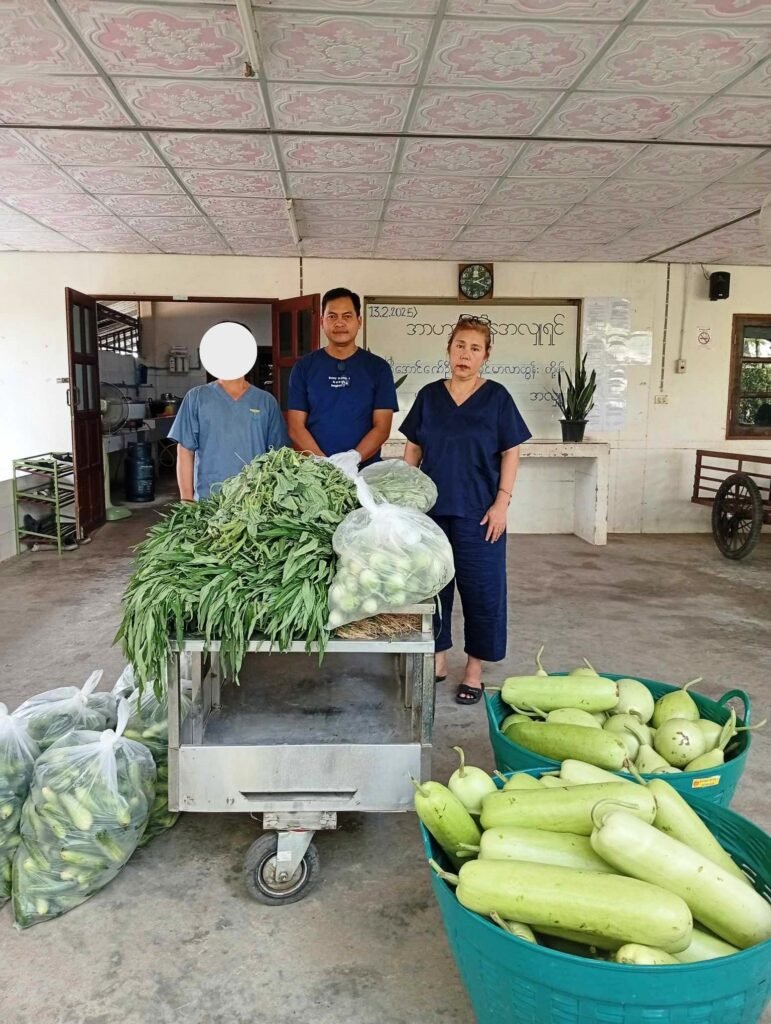 19 . 2. 2025 ရက်နေ့တွင် စိုက်ပျိုးရေးခြံမှ ထွက်ရှိသော – ဘူးသီး – 112 kg , ကန်စွန်းရွက် – 43 kg , ချဉ်ပေါင်ရွက် – 14.5 kg , သခွါးသီး – 60 kg နှင့် ပဲတောင့်ရှည် – 15 kg တို့အား စုစုပေါင်း (244.5 kg) တို့အား (Manna school & Samuhtaw school) တို့အား လူဦးရေ – 978 ဦးအတွက် သွားရောက်လှူဒါန်းပေးခဲ့ပါသည်။
