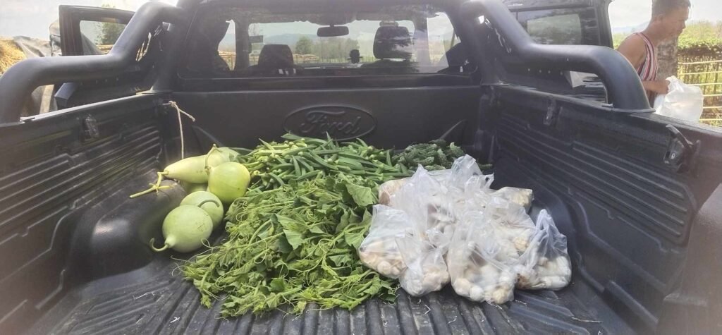 4 . 4 . 2025 ရက်နေ့တွင် စိုက်ပျိုးရေးခြံမှ ထွက်ရှိသော မှို – 5 kg ၊ ကြက်ဟင်းခါးသီး – 11.5 kg ၊ ရုံးပတီသီး – 13.5 kg ၊ ကန်စွန်းရွက် – 8 kg ၊ ဘူးသီး – 50.5 kg နှင့် ဘူးညွန့် – 5 kg ( စုစုပေါင်း – 93.5 kg ) တို့အား ( SAW ကျောင်း ) သို့ လူဦးရေ – 374 ဦးစာအတွက် သွားရောက် လှူဒါန်းခဲ့ ပါသည်။