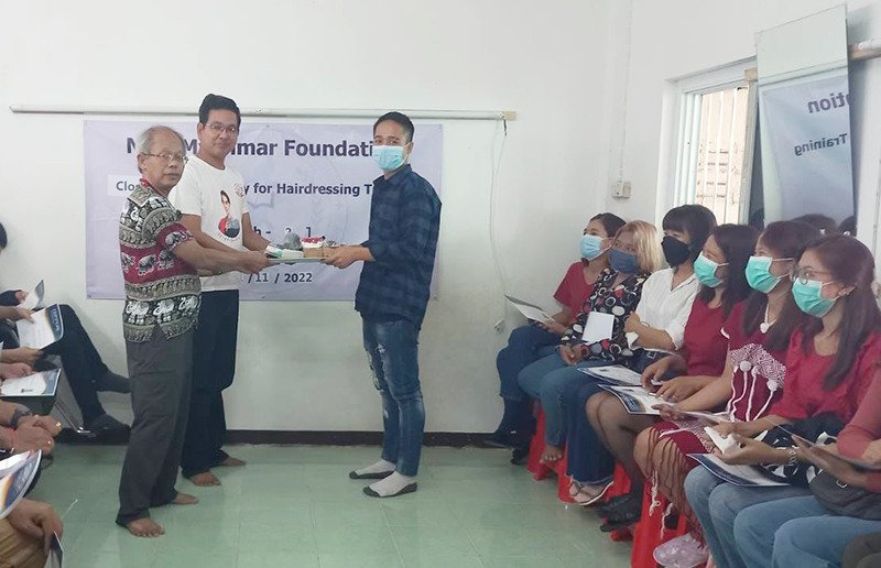 New Myanmar Foundation ၏ အမျိုးသား၊ အမျိုးသမီး ဆံပင်ညှပ်သင်တန်း အပတ်စဉ် (၂) သင်တန်းဆင်းပွဲ အခမ်းအနားကို ၁၁.၁၁.၂၀၂၂ ခုနှစ် သောကြာနေ့ နံနက် (၁၁) နာရီပြုလုပ်ခဲ့ပါသည်။