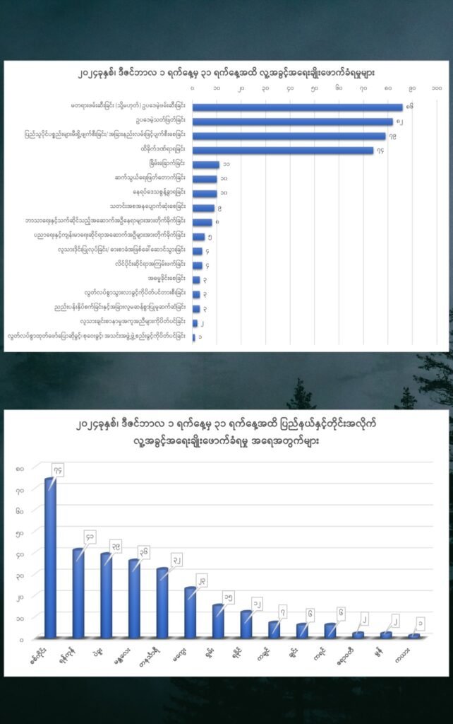 A significant amount of these violations such as arbitrary arrests of civilians, especially targeting young men and women. On December 25, 2024, at around 6:00 PM, in Ward 18 of South Dagon Township, Yangon Region, local authorities, led by the ward administrator detained two brothers from their home. After shortly the elder brother was forced to be conscripted into military service, and the younger brother resisted the conscription attempt and was detained with an electric shock Gun by local administrators. There were 86 incidents recorded as arbitrary arrests, making the highest number of human rights violations during this month, Yangon Region being the most affected, followed by Sagaing Region and Tanintharyi Region.