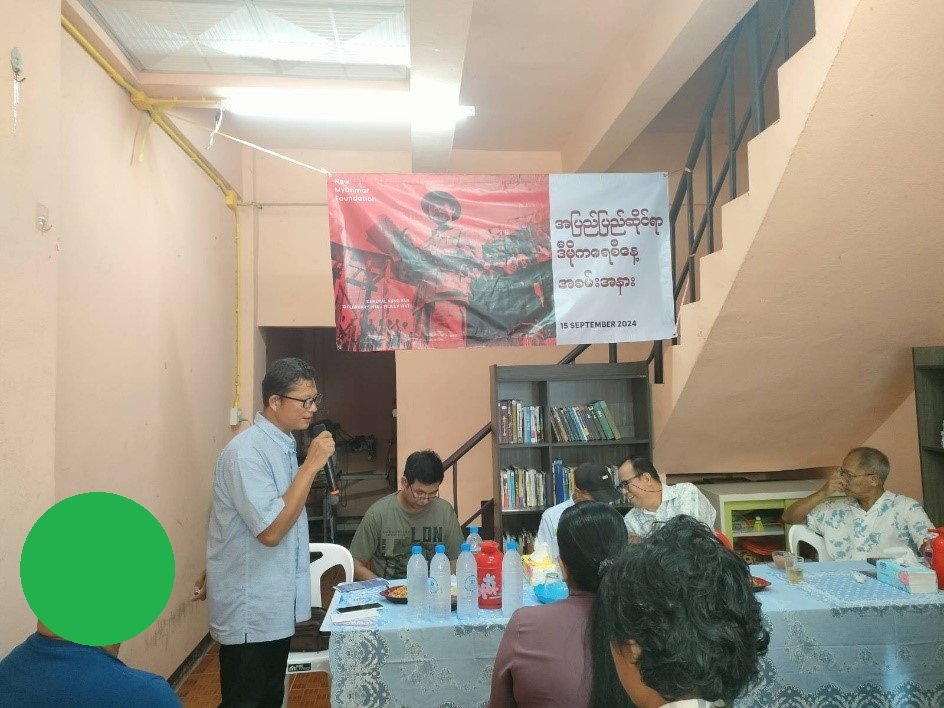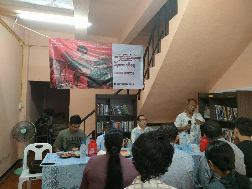 ၂၀၂၄ခုနှစ်၊ စက်တင်ဘာလ (၁၅) ရက်နေ့တွင် ကျရောက်သော “အပြည်ပြည်ဆိုင်ရာ ဒီမိုကရေစီနေ့ အထိမ်းအမှတ် အခမ်းအနားပွဲအား New Myanmar Foundation မှ ဦးစီး၍ ထိုင်း-မြန်မာနယ်စပ် တနေရာတွင် ကျင်းပပြုလုပ်ခဲ့ပါသည်။