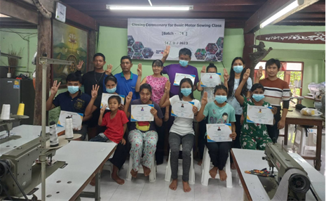 New Myanmar Foundation ၏ ၅-၉-၂၀၂၃ မှ ၁၄-၉-၂၀၂၃ ရက်နေ့အထိ (၁၀) ရက်ကြာ ကျင်းပဖွင့်လှစ်သည့် အခမဲ့ အခြေခံလျှပ်စစ် မော်တာစက်ချုပ်သင်တန်း အပတ်စဉ်-(၃၁) သင်တန်းဆင်းပွဲ ကို (၁၄-၉-၂၀၂၃) ရက်နေ့ နေ့လည် (၂) နာရီတွင် ထိုင်း-မြန်မာနယ်စပ်ဒေသရှိ Sewing Machine Training Center တွင် ကျင်းပ ပြုလုပ်ခဲ့ပါသည်။