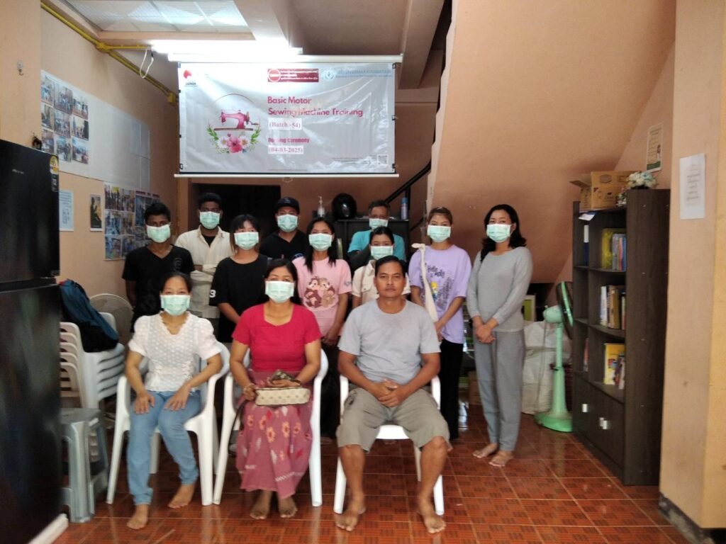 New Myanmar Foundation မှ ဦးစီးကျင်းပပြုလုပ်သော (၁၂) ရက်ကြာ “အခမဲ့ အခြေခံမော်တာ စက်ချုပ် သင်တန်း” အပတ်စဉ် (၅၄)၊ ဖွင့်ပွဲအခမ်းအနား ကို ၂၀၂၅ ခုနှစ်၊ မတ်လ (၄) ရက်နေ့၊ နံနက် (၈:၃၀) နာရီတွင် မဲဆောက်မြို့ရှိ နယူးမြန်မာ ဖောင်ဒေးရှင်း၏ စက်ချုပ် သင်တန်းခန်းမ၌ ကျင်းပပြုလုပ်ခဲ့ပါသည်။