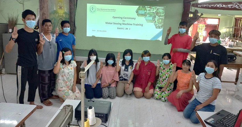 New Myanmar Foundation မှ ဦးစီးကျင်းပပြုလုပ်သော (၁၀) ရက်ကြာ နေ/စား စရိတ်ငြိမ်း “အခမဲ့ အခြေခံ မော်တာစက်နင်းစက်ချုပ်သင်တန်း” အပတ်စဉ်-(၃၄) ကို (၁-၁၁-၂၀၂၃) ရက်နေ့တွင် ကျင်းပ ပြုလုပ်ခဲ့ပါသည်။