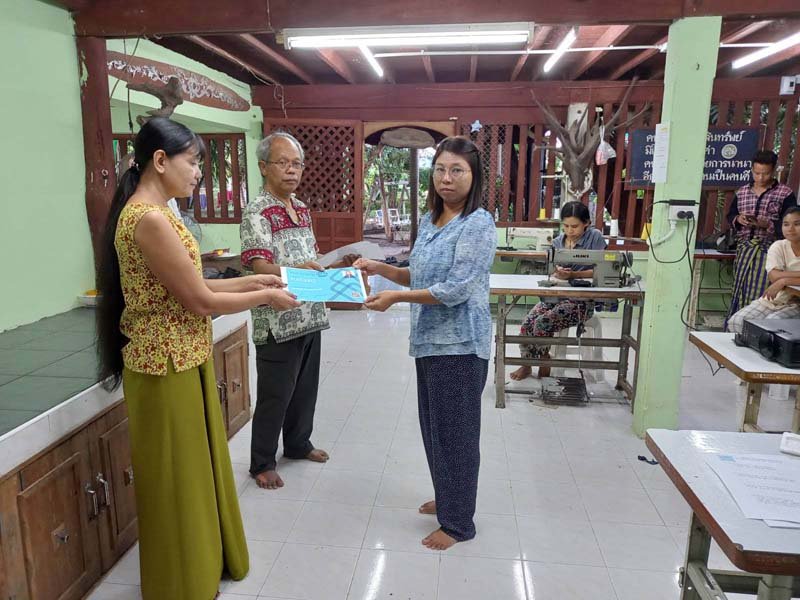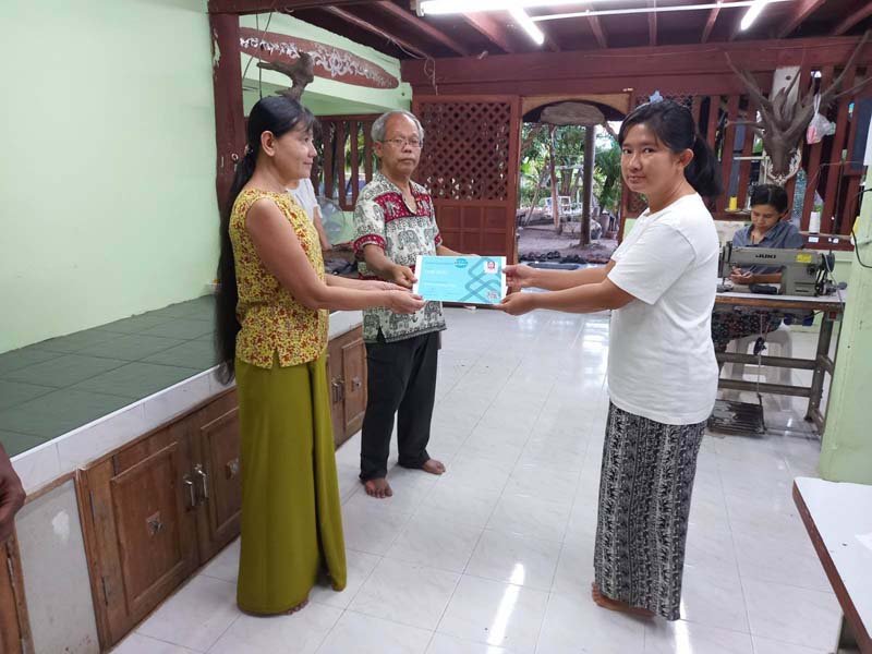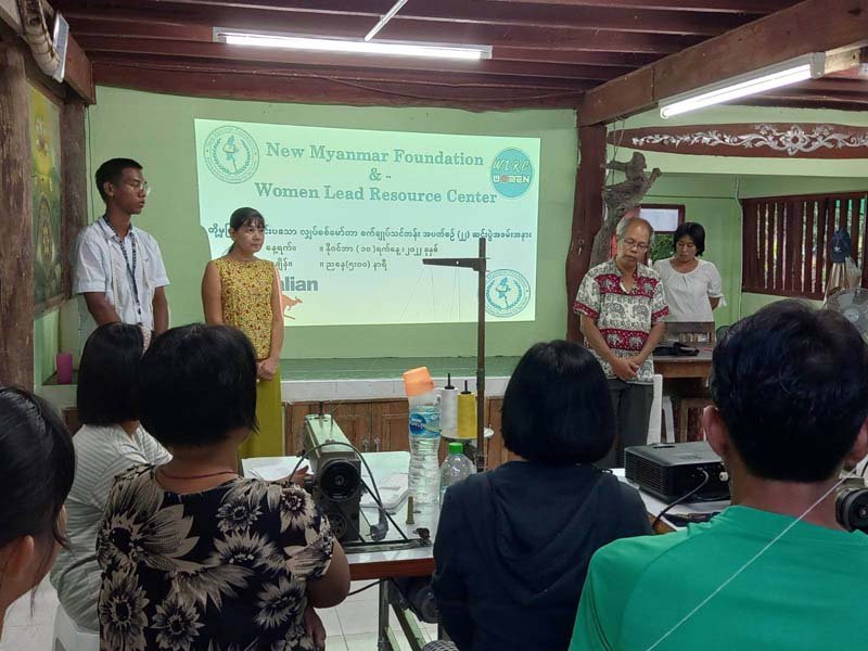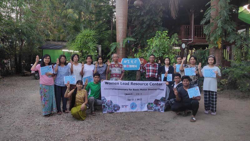 New Myanmar Foundation နှင့် Women Lead Resource Center တို့ ပူးပေါင်းပြုလုပ်သော အခမဲ့ အခြေခံ စက်ချုပ်သင်တန်း အပတ်စဉ် (၂၁) သင်တန်းဆင်းပွဲကို (၁၀-၁၁-၂၀၂၂) ရက်နေ့တွင် ထိုင်း-မြန်မာနယ်စပ်ဒေသရှိ Women Lead Resource Center တွင် ကျင်းပပြုလုပ်ခဲ့ကြရာသင်တန်းကို အောင်မြင်ပြီးမြောက်သည့်အထိ တက်ရောက်ခဲ့ကြသော သင်တန်းသူ/သင်တန်းသား (၁၁) ယောက်ကို New Myanmar Foundation ၏ တာဝန်ခံ ဒေါက်တာစန်းအောင်မှ အခုလိုကိုယ့်ဘဝ ကိုယ်ရပ်တည်ဖို့ကြိုးစားပြီး သင်တန်းလာတယ်လို့ ယုံကြည်လို့ ဂုဏ်ယူ ချီးကျူးပါကြောင်း ၊ ကိုယ်တိုင်းပြည်အတွက် မင်းတို့တွေအားလုံးဟာ အားတွေဖြစ်ကြောင်း ၊ အဓိကမင်းတို့တွေတိုးတက်မှ တိုင်းပြည်တိုးတက်မယ် ဆိုတဲ့စိတ်တစ်ခုနဲ့ကြိုးစားကြပါ။ New Myanmar Foundation ၏ ကူညီနေမှုများ ဆောင်ရွက်နေမှုများကို ရှင်းပြခြင်းပြုခဲ့ပြီး တန်ဘိုးရှိရှိ အသုံးပြုနိုင်ကြောင်း တိုက်တွန်း အားပေးမှာ ကြားခဲ့ပါသည်။