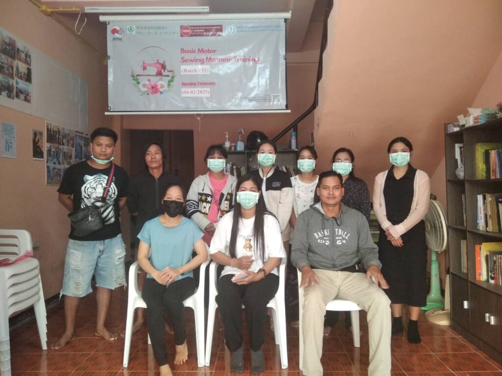 New Myanmar Foundation မှ ဦးစီးကျင်းပပြုလုပ်သော (၁၁) ရက်ကြာ အခမဲ့ အခြေခံမော်တာ စက်ချုပ်သင်တန်း” အပတ်စဉ် (၅၂) ဖွင့်ပွဲ အခမ်းအနား ကို ၂၀၂၅ ခုနှစ်၊ ဖေဖော်ဝါရီလ (၄) ရက်နေ့၊ နံနက် (၉:၃၀) နာရီတွင် မဲဆောက်မြို့ရှိ နယူးမြန်မာ ဖောင်ဒေးရှင်း၏ စက်ချုပ် သင်တန်းခန်းမ၌ ကျင်းပပြုလုပ်ခဲ့ပါသည်။