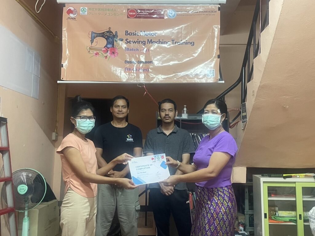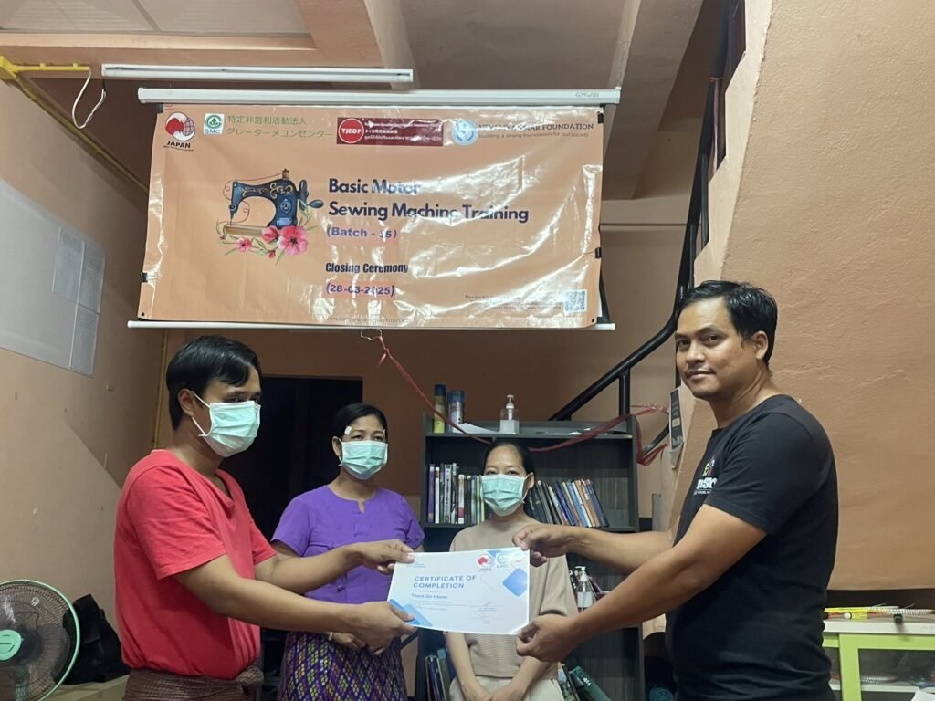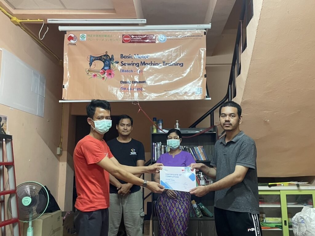 ၂၀၂၅ ခုနှစ်၊ မတ်လ (၁၇) ရက်နေ့ မှ (၂၈) ရက်အထိ (၁၂) ရက်ကြာ ဖွင့်လှစ်သင်ကြားပေးခဲ့သော New Myanmar Foundation ၏ အခမဲ့အခြေခံလျှပ်စစ်မော်တာ စက်ချုပ်သင်တန်း အပတ်စဉ် (၅၅) သင်တန်းဆင်းပွဲ အခမ်းအနား ကို ၂၀၂၅ ခုနှစ်၊ မတ်လ (၂၈) ရက်နေ့ ညနေ (၄ : ၀၀) နာရီတွင် ထိုင်း-မြန်မာနယ်စပ်ဒေသရှိ နယူးမြန်မာ ဖောင်ဒေးရှင်း၏ စက်ချုပ်သင်တန်းခန်းမတွင် ကျင်းပပြုလုပ်ခဲ့ပါသည်။
