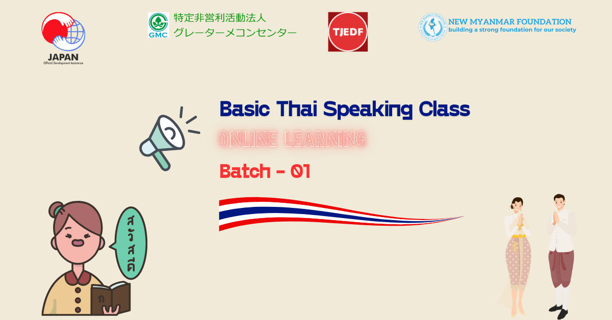 ထိုင်း-မြန်မာနယ်စပ်၊ မဲဆောက် နှင့် ထိုင်းနိုင်ငံရောက် မြန်မာ့ဒီမိုကရေစီအရေးနှင့် လူ့အခွင့်အရေးလှုပ်ရှားသူများ အပါအဝင် မြန်မာပြည်သူများ နေ့စဉ်ကြုံတွေ့နေရသည့် ထိုင်းဘာသာစကားဆိုင်ရာ အခက်အခဲများကို ကူညီဖြေရှင်းပေးနိုင်ရန် နှင့် အလုပ်အကိုင်ရှာဖွေရာတွင် အထောက်အကူပြုနိုင်ရန် ရည်ရွယ်လျက် New Myanmar Foundation မှ အခြေခံ အွန်လိုင်းထိုင်းဘာသာစကားပြောသင်တန်းများကို စဉ်ဆက်မပြတ် ဖွင့်လှစ်သင်ကြားပေးလျက်ရှိပါသည်။