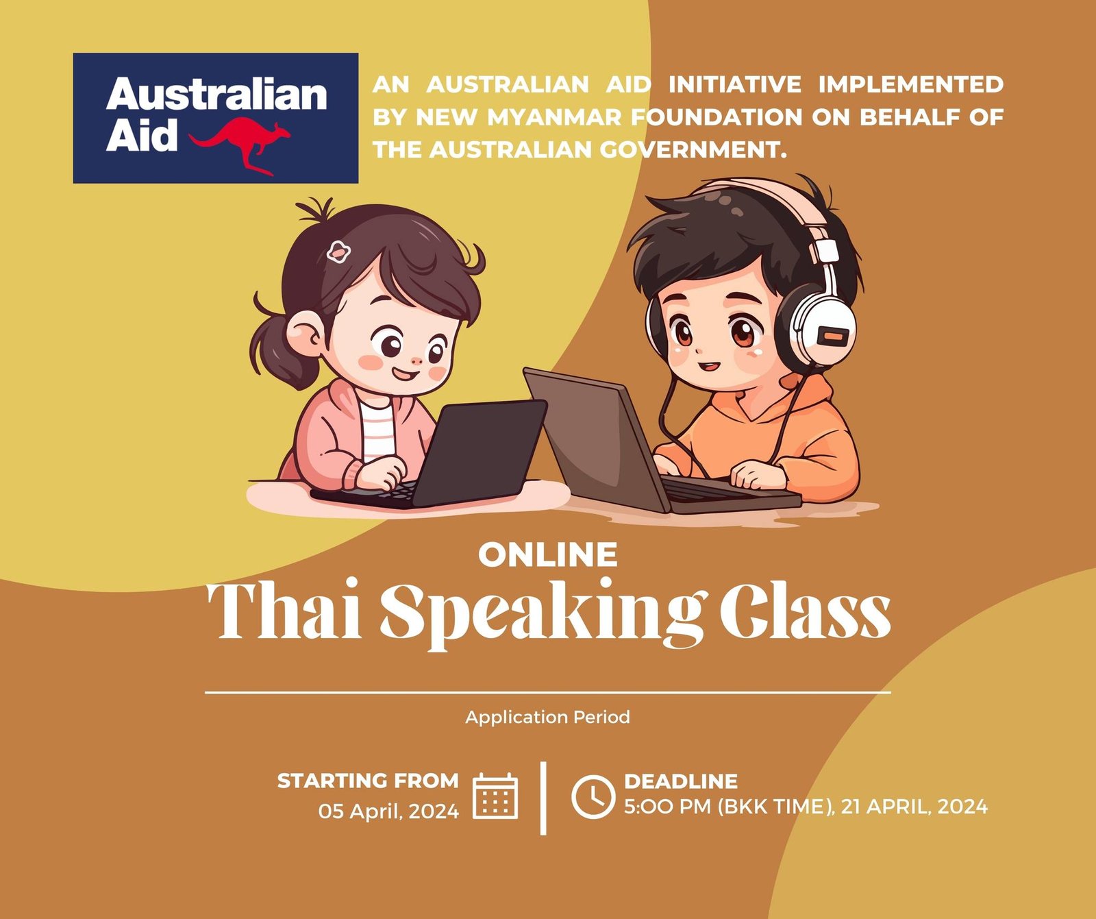 ထိုင်း-မြန်မာနယ်စပ်၊ မဲဆောက် နှင့် ထိုင်းနိုင်ငံရောက် မြန်မာ့ဒီမိုကရေစီအရေးနှင့် လူ့အခွင့်အရေးလှုပ်ရှားသူများ အပါအဝင် မြန်မာပြည်သူများ နေ့စဉ်ကြုံတွေ့နေရသည့် ထိုင်းဘာသာစကားဆိုင်ရာ အခက်အခဲများကို ကူညီဖြေရှင်းပေးနိုင်ရန် နှင့် အလုပ်အကိုင်ရှာဖွေရာတွင် အထောက်အကူပြုနိုင်ရန် ရည်ရွယ်လျက် New Myanmar Foundation မှ အွန်လိုင်း အခြေခံထိုင်းဘာသာစကားပြောသင်တန်း အပတ်စဥ် (၈) ကို ၂၀၂၄ ခုနှစ်၊ မေလ (၁) ရက် (ဗုဒ္ဓဟူးနေ့)တွင် စတင်ဖွင့်လှစ်သွားမည်ဖြစ်ပါသဖြင့် ထိုင်းဘာသာစကားကို စိတ်ပါဝင်စားသင်ယူလိုသူများ လျှောက်ထားနိုင်ပါသည်။
