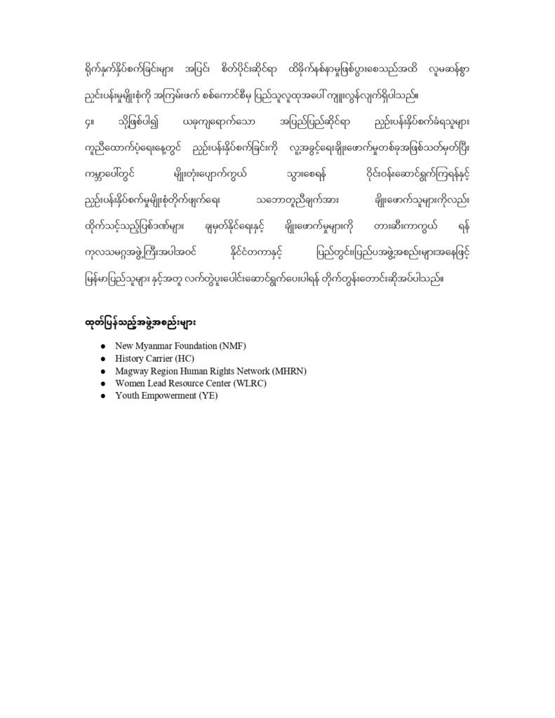 New Myanmar Foundation နှင့် မိတ်ဖက်အဖွဲ့အစည်းများမှပူးပေါင်းထုတ်ပြန်ချက်